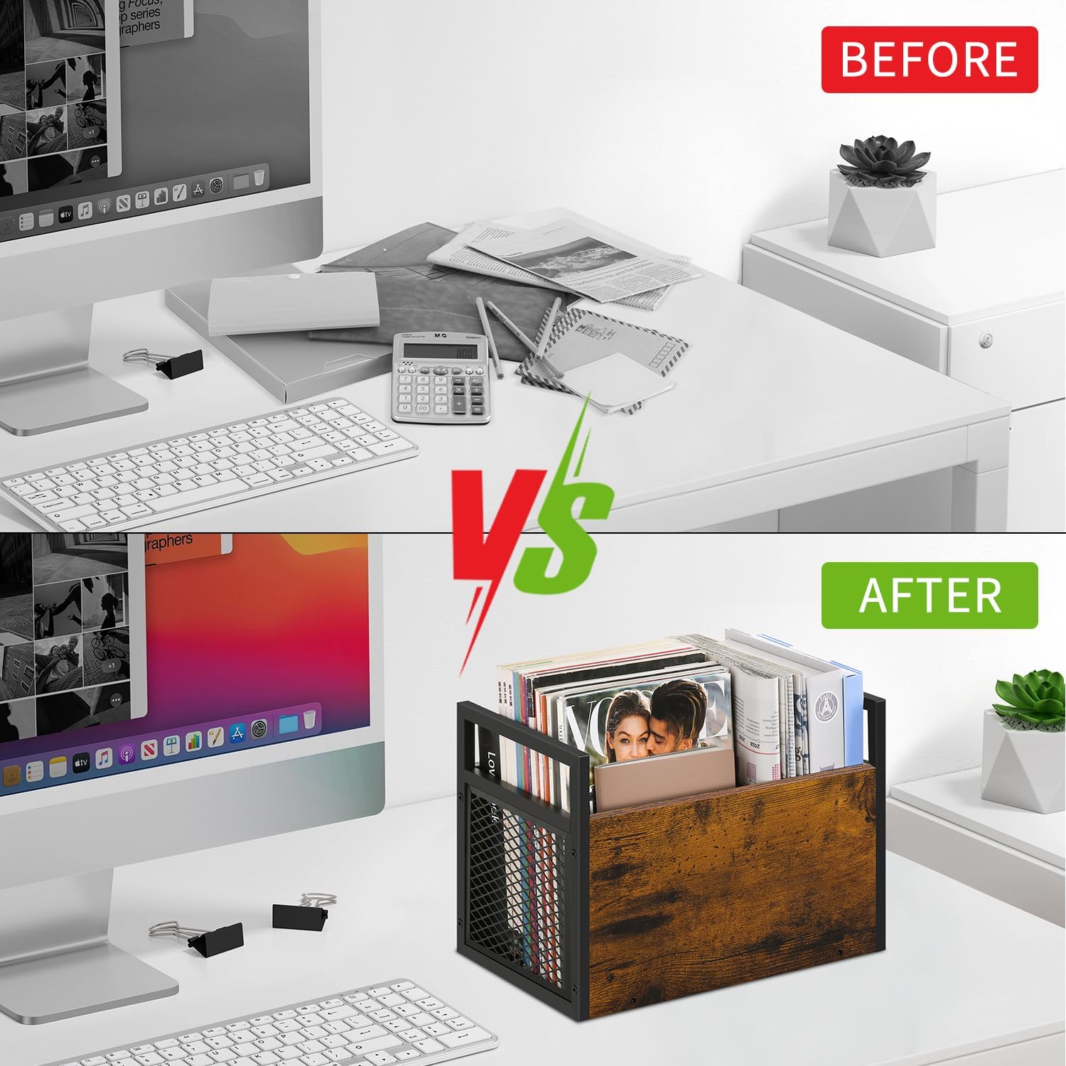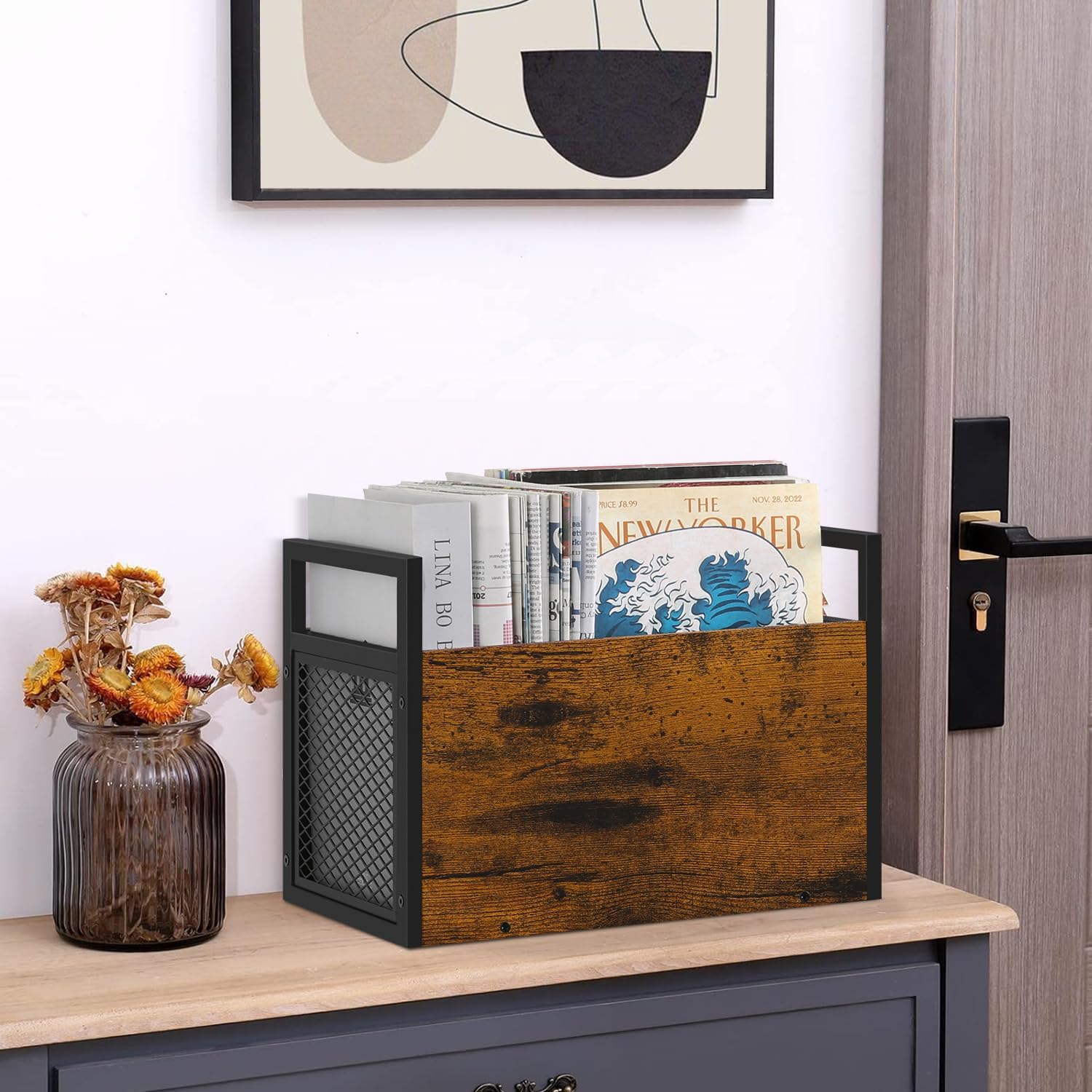 Versatile Placement: The magazine storage baske measures 13.97″x7.87″x9.84″, making it perfect for placement on the floor or on a tabletop. Magazine holder is an ideal choice for living room, bedroom, study, home or office entrance, and is also a perfect decoration for different home styles.