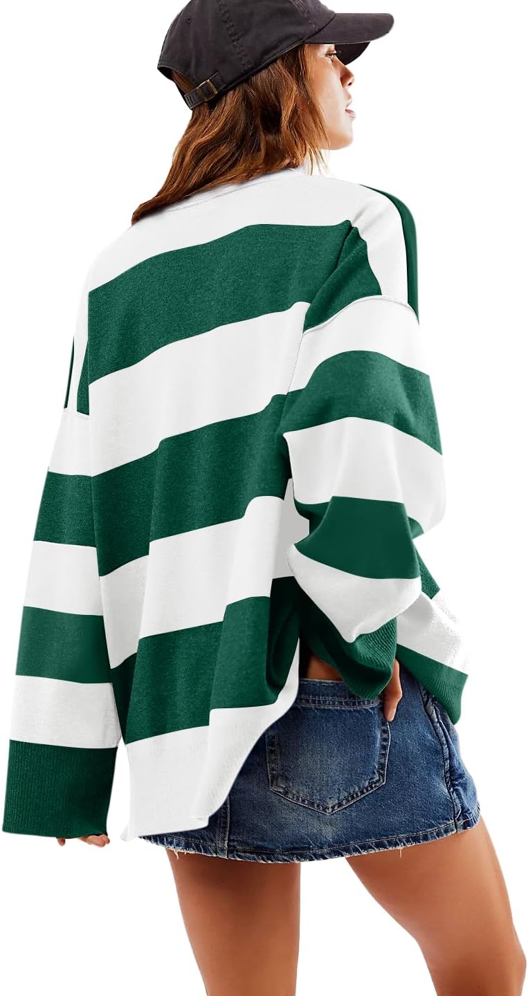 Yousify Tunic Sweaters for Women Dressy Casual V Neck Half Zipper Striped Knit Sweater Fall Tops