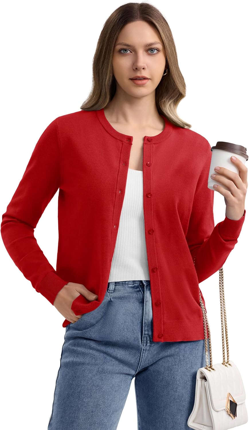 YUCOLEN Women Knit Cardigans Sweater Crewneck Long Sleeve Lightweight Cardigans