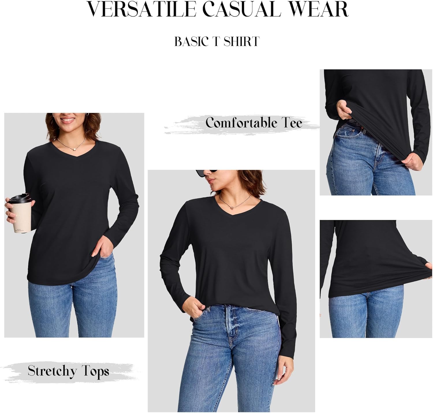YUCOLEN Womens Long Sleeve T Shirts V Neck Basic Casual Cotton Tees Tops 2025