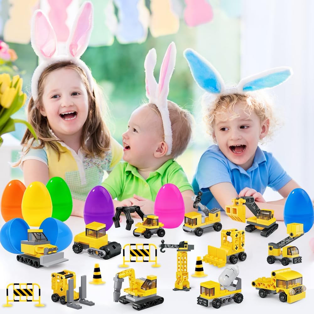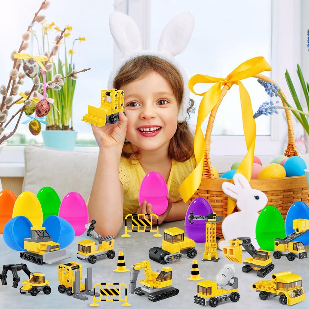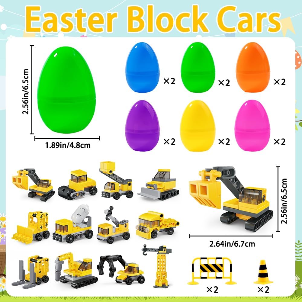 12 Packs Easter Eggs Prefilled with Building Blocks Construction Vehicles Cars