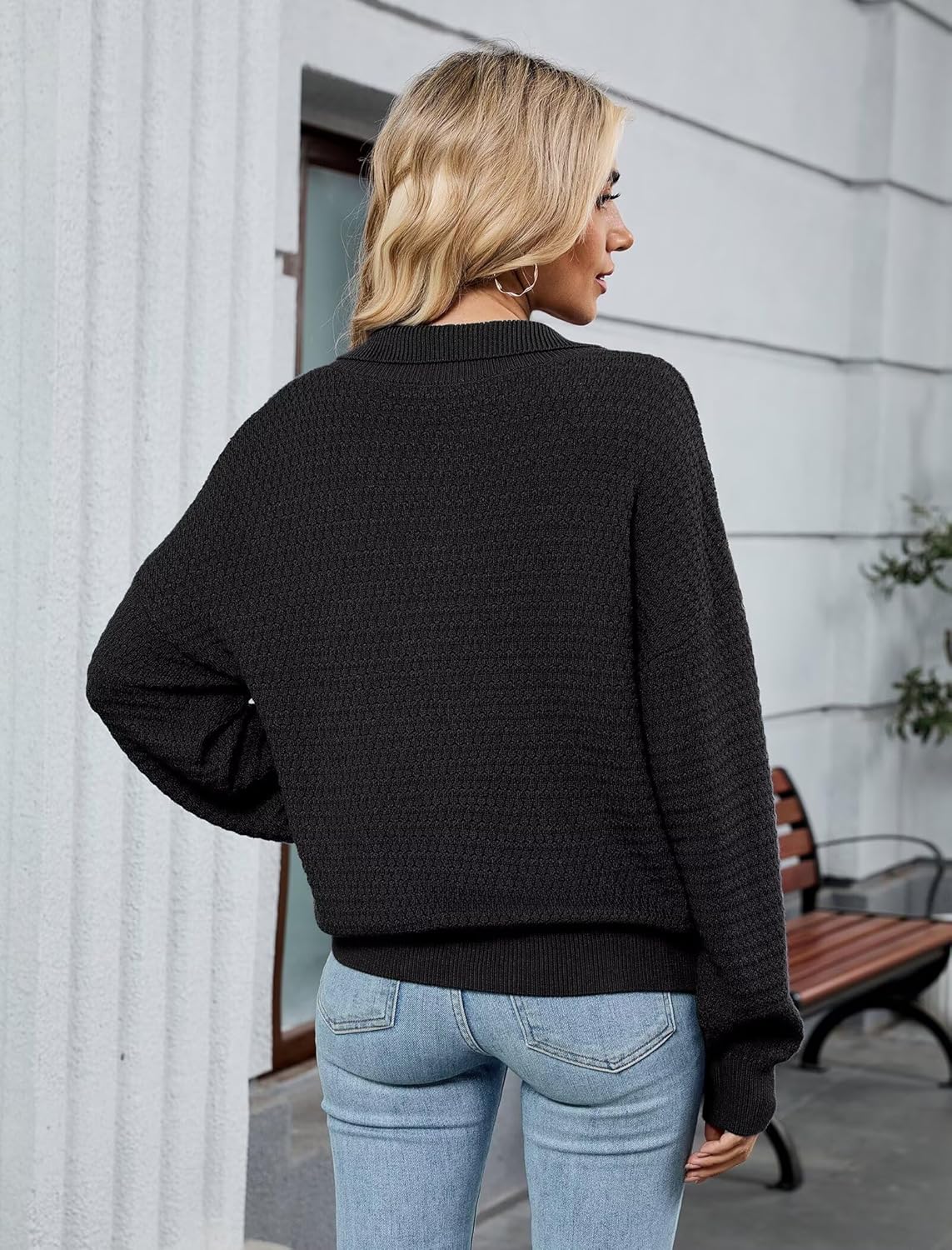 The video showcases the product in use.The video guides you through product setup.The video compares multiple products.The video shows the product being unpacked. ZAFUL Womens Casual Quarter Zip Pullover Sweater Merchant Video