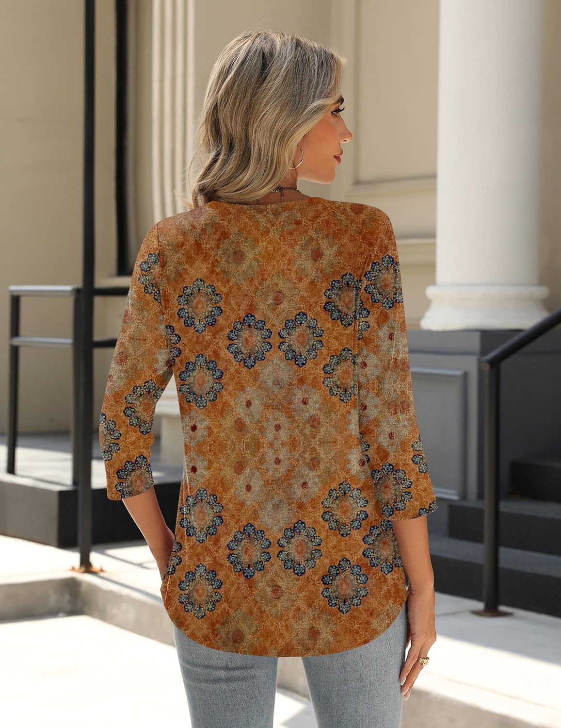 Zeagoo 3/4 Length Sleeve Womens Tops Crew Neck Loose Fit Shirts Pleated Cute Clothes Dressy Casual 2025 Summer Tunics