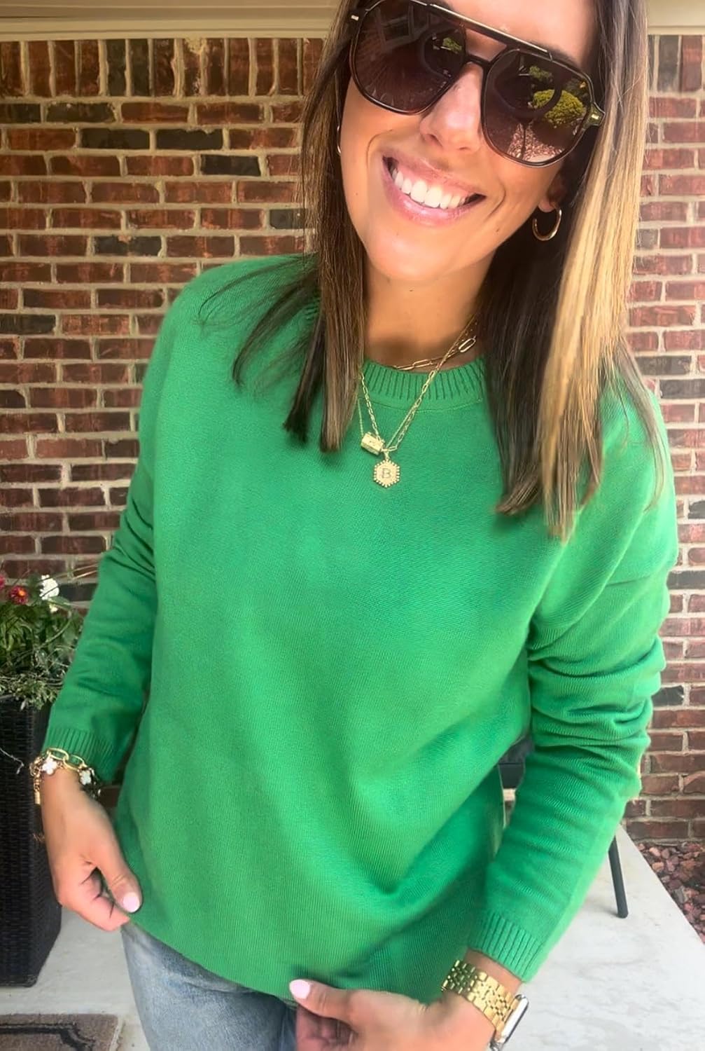 Womens Fall Fashion 2024 green sweater Long Sleeve Shirts Crewneck Knit Casual Loose Pullover Sweaters Tops