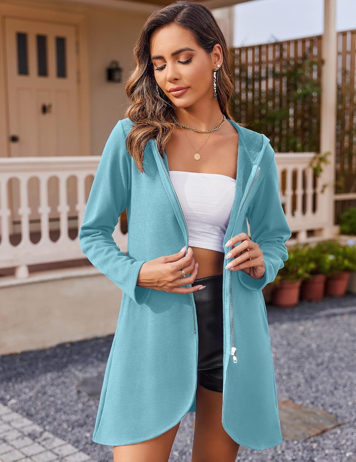 Zeagoo Women’s Long Zip Up Hoodie Lightweight Oversized Tunic Sweatshirt Open Front Cardigan Jacket with Pockets