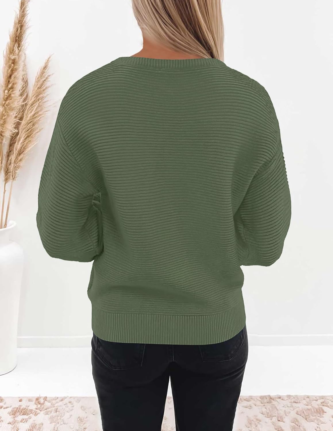 ZESICA Women’s Crew Neck Long Lantern Sleeve Fall 2025 Casual Loose Ribbed Knit Solid Soft Pullover Sweater Tops
