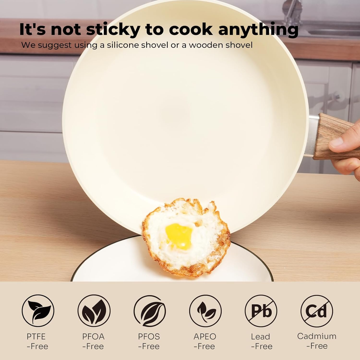 We suggest using a wooden spatula or a silicone spatula to prolong the service life of the coating